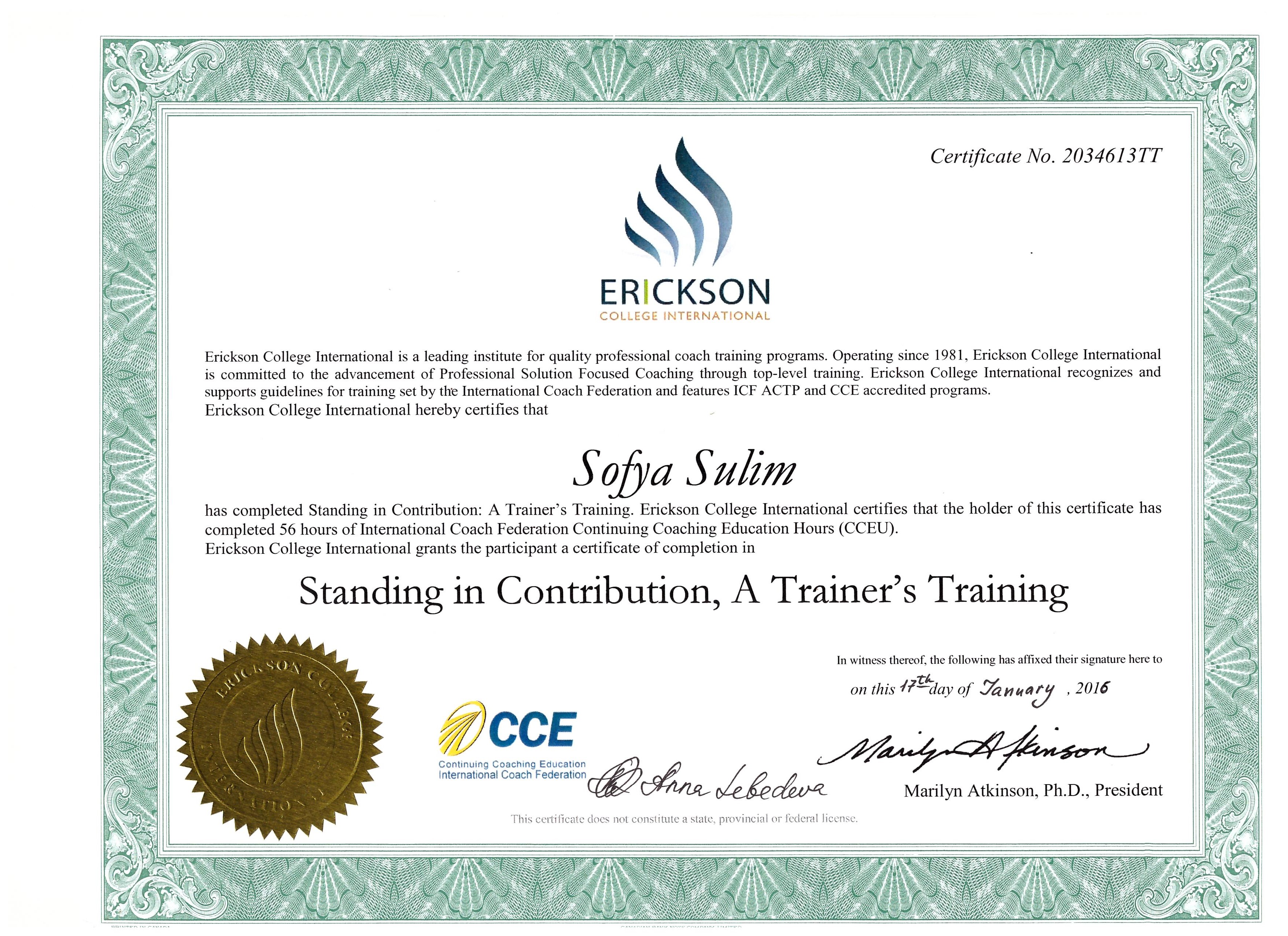- «Тренинг для тренеров». Международный Эриксоновский Университет коучинга, Москва. Международный сертификат.